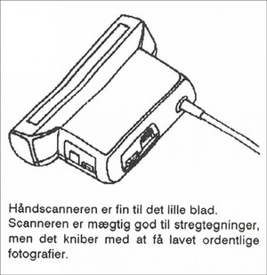Den gang anbefalede jeg denne lille Håndscanner, og brugte den selv flittigt, på trods af de ulemper den havde.Bemærk de skæve linier på overdelen - de skyldes, at jeg ikke rullede scanneren hen over den originale tegning med nøjagtig den samme hastighed eller måske rullede lidt skævt, da jeg scannede.